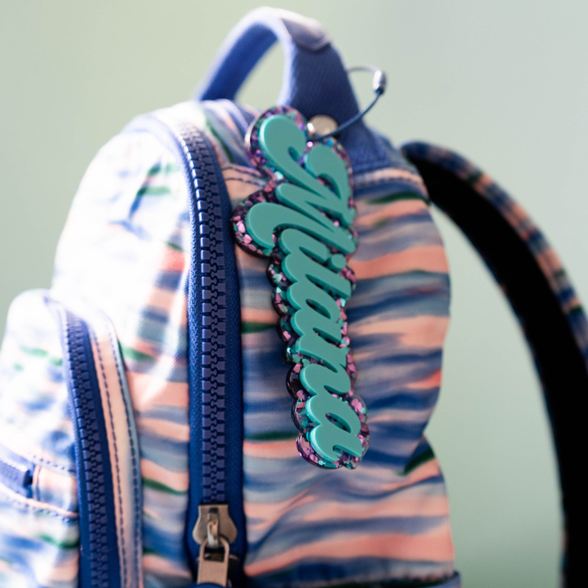 This custom name tag is perfect for adding a touch of fun and flair to any bag, backpack, or accessory. The vibrant matte turquoise gives it a sleek, modern look, while the glittery hearts base bring a pop of playful charm thatβs impossible to miss. Whether you're personalizing your school gear or just want a little extra sparkle in your day, this name tag is sure to turn heads and make your belongings stand out in style!